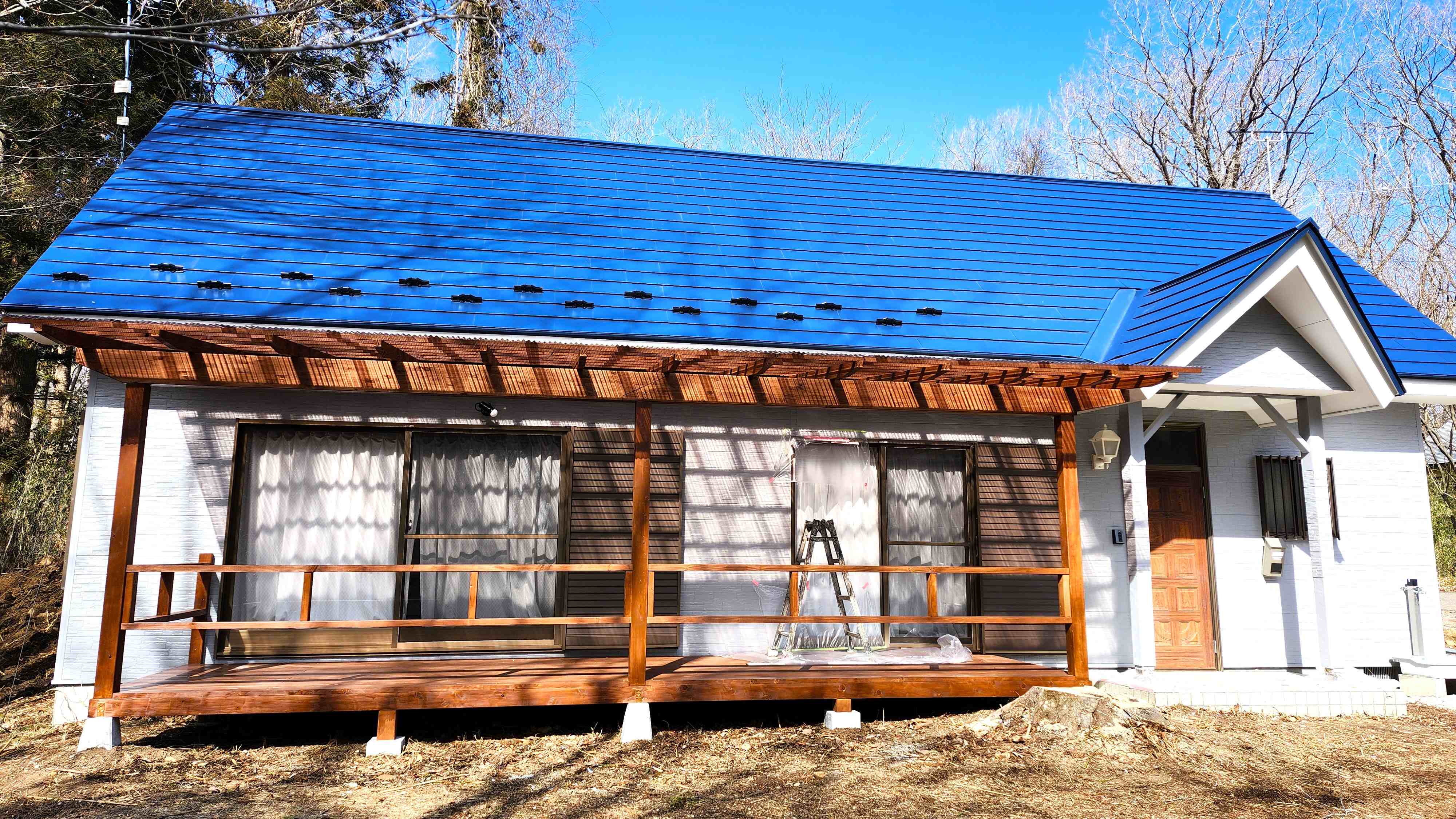 清流沿い100坪、1LDK。屋根の葺替工事から浄化槽新設工事まで、内外装全面リニューアル物件です。広々、軒付ウッドデッキ有り。駐車場も2台分の確保済みです。~物件情報/那須高原別荘村「繭の里」