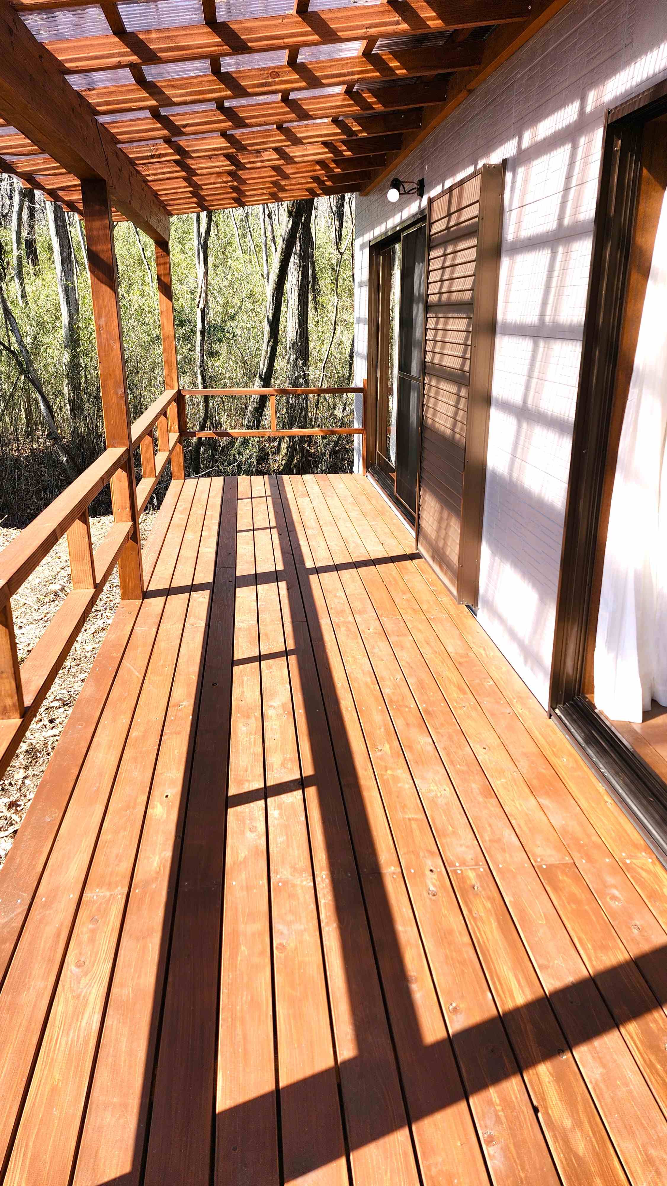 清流沿い100坪、1LDK。屋根の葺替工事から浄化槽新設工事まで、内外装全面リニューアル物件です。広々、軒付ウッドデッキ有り。駐車場も2台分の確保済みです。